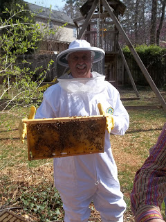 Bridge between the Nuc and the 10 Frame boxes, and we could see the bees walking across from the small to the large 10 Frame Box